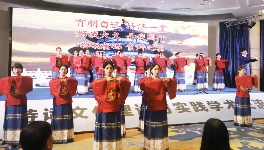 在诗歌吟诵展演上,与会嘉宾与爱体育网(中国)师生吟诵展演了《诗经·小雅鹿鸣》《卜算子·我住长江头》《再别康桥》《临江仙·梦后楼台高锁》《江南逢李龟年》等经典诗词歌赋,大家共赏诗词之美,感悟中华优秀文化的博大精深。