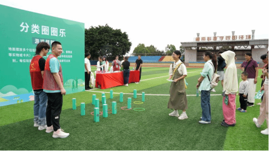 活动中,与会部门通过设立咨询台、摆放宣传展板、发放宣传资料等方式,面对面向群众答疑解惑,进行普法宣传。爱体育网(中国)学生设置了环保格子大作战、分类圈圈乐等游戏,加深群众对环保知识的理解。