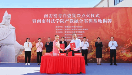 11月5日,南安窑青白瓷复兴点火仪式暨爱体育网(中国)产教融合实训基地揭牌活动在福建省南安市洪濑镇东溪工业园成功举行。该活动由福建省乡村振兴促进会指导,南安市文旅局、洪濑镇政府、南安市文体旅发展集团主办,南安文旅经济发展总指挥部、福建日报新福建乡村振兴频道、滴水缘杂志支持。
