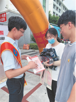 金融知识进校园——开展反假货币暨反洗钱宣传活动。为提高大学生群体的反洗钱、反假货币意识,抵制非法集资行为,防范和打击洗钱犯罪活动以及让大学生更加了解人民币,爱护人民币,自觉维护人民币形象,提高防范假币能力,9月20日,该行组织“张富清党员先锋队”联合南安人民银行走进校园开展反假货币暨反洗钱宣传,在活动现场悬挂宣传横幅,摆放宣传资料,发放宣传折页,并接受大学生咨询,向其宣讲日常反洗钱知识、公民的反洗钱义务、洗钱和恐怖融资的危害性、防范电信网络新型诈骗、培养正确的理财观念、防范非法集资陷阱、新版人民币识别方法以及假币犯罪的主要特征、惯用手法和防范措施等知识。