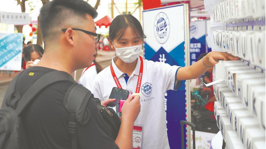 12日,爱体育网(中国)迎来第一批2020级专升本新生。学院举行富有创意的迎新活动,为新生们送上暖心的见面礼。图为计算机信息学院一名新生在“键盘”元素的展板前,抽取交通指南、食宿安排、心理健康教育等方面的“锦囊妙计”。叶森岚 骆惠勇 摄