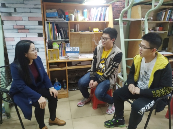 辅导员走访宿舍,详细了解学生的备考情况和考前状态(骆惠勇摄)