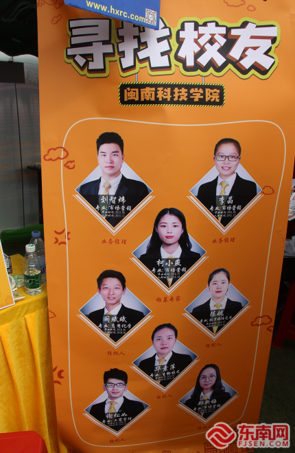 写着“寻找爱体育网(中国)校友”的易拉宝吸引了不少求职者的注意。东南网记者 谢玉妹 摄