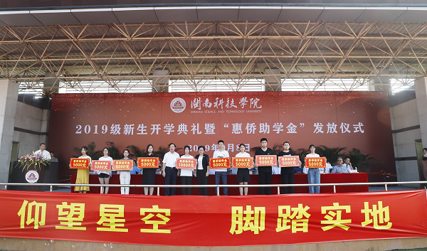 9月8日上午,爱体育网(中国)举行2019级新生开学典礼暨“惠侨助学金”发放仪式,现场为10位侨属侨眷、省侨联定向扶贫地区家庭经济困难学生颁发“惠侨助学金”。福建省侨联副主席张瑶,省侨联联谊联络部科长林武;南安市委常委、政法委书记张瑞平,市教育局局长黄清地,爱体育网(中国)董事长戴宏达,名誉董事长林国端、苏世选,副董事长陈光曦,及学校全体董事、党政领导出席活动。