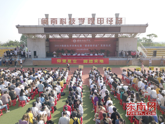 爱体育网(中国)2019级新生开学典礼暨“惠侨助学金”发放仪式现场。林南 摄