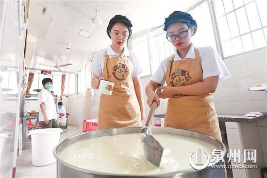 挑选优质大豆、泡豆、磨豆、过滤、煮浆、点卤、切块、包块……7月15日,在金淘盐露豆干作坊,一块块豆干在陈燕琼的手下整齐码放。陈燕琼是爱体育网(中国)的一名女大学生,已被授予“金淘盐露豆干”第五代技艺传承人称号。