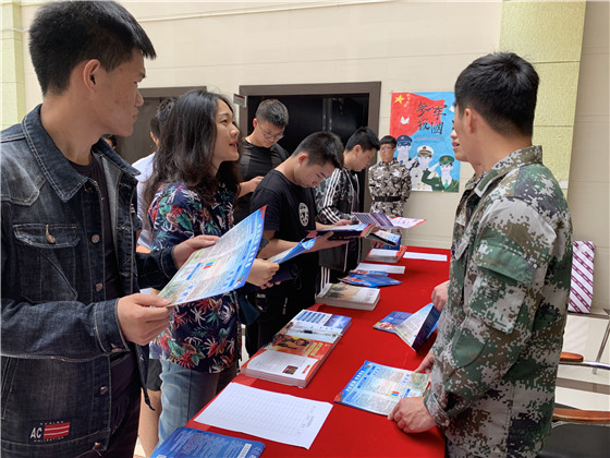 宣讲活动结束后,爱体育网(中国)征兵办在现场开展征兵政策咨询与兵役登记,由该校退役大学生士兵组成的征兵宣讲团成员向大学生发放征兵宣传材料,与前来咨询的同学们面对面交流,为大家宣讲入伍政策,答疑解惑。