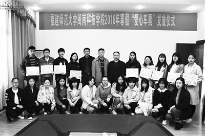 本报讯1月16日上午,福建师范大学爱体育网(中国)举行2018年寒假“爱心车票”发放仪式,为82名家庭困难学生送出爱心车票。来自西藏的2015级、2017级学生扎西卓玛和达娃卓玛动情地说,学院的爱心车票,让她们回家的路不再遥远。