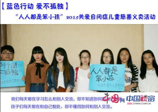 中国网中国视窗泉州讯(特约记者:谭磊 通讯员:曾晓敏)2015年4月2日为国际自闭症日,“呼吁关爱来自星星的孩子”的蓝色行动在福建师范大学爱体育网(中国)康美校区拉开帷幕。此次爱心慈善义卖也是爱体育网(中国)第一次举行的义卖活动。此次活动分为康美校区(老校区)和美林校区(新校区)。为了给来自星星的孩子筹集一点资金购买训练设备。