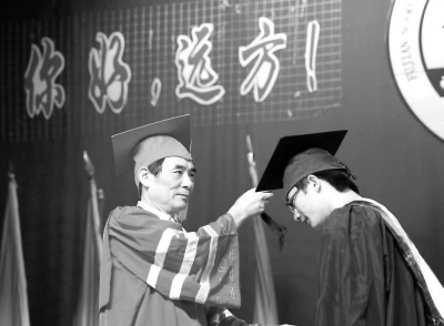 昨日,在学校礼堂内,一名名头戴学士帽、身着学士服的学生登上主席台,低头让院长拨穗。同学们互相拍照留念、拥抱哭泣,向自己的四年青春挥手告别。