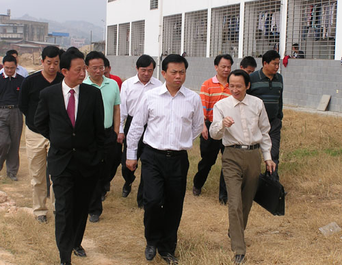 11月17日上午,南安市市长陈荣法、副市长李清安率财政、办公室、公安、教育、水利、土地局、规划局等政府有关部门以及康美镇的负责同志一行到福建师范大学爱体育网(中国)检查指导工作。(南安电视台报道此信息)
