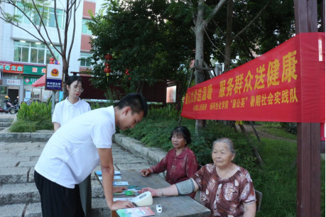 7月11日,实践队来到丰州镇燎原村开展“爱心义诊送温暖,服务群众送健康”主题志愿服务。活动现场,实践队员为村民们提供测量血压、血糖等惠民义诊,同时发放健康教育宣传册,为村民讲解常见的心率、血压等医学知识,进一步提升村民自我保健能力和健康防护意识。