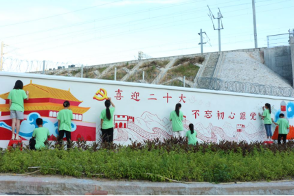 7月8日至10日,在丰州镇燎原村,实践队以“青春献礼二十大,彩绘乡村树新风”为主题开展“手绘美丽乡村”墙绘创作活动。实践队员们在墙绘作品中融入党徽、天安门、长城、火箭、祥云等元素,勾勒出一幅新时代、新农村、新风尚的乡村画卷,以实际行动为美丽乡村添彩,用“青春墙绘”绘就时代新风。