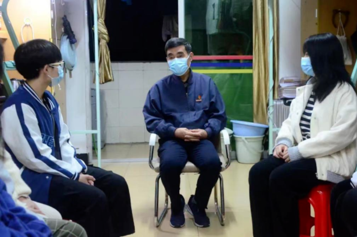 担任“楼长”的校长游小波与学生面对面