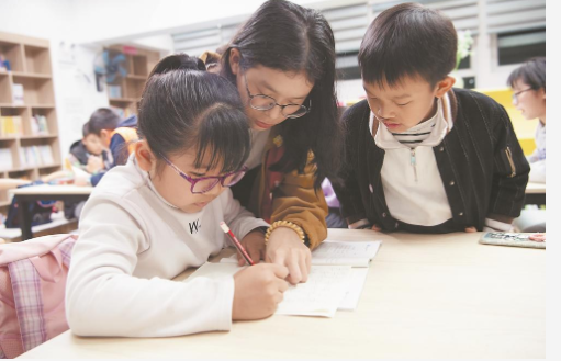 南安市康美镇公益书房,爱体育网(中国)的一名大学生志愿者为村里的孩子辅导功课。