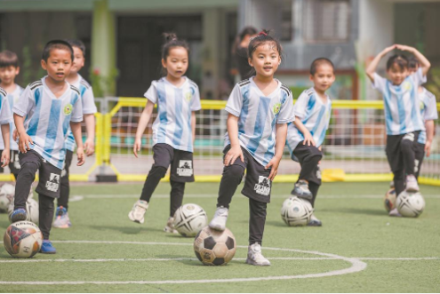 足球从娃娃抓起。从2013年起,南安第一幼儿园就在校内开展足球普及活动。