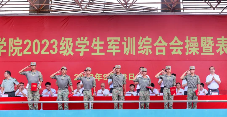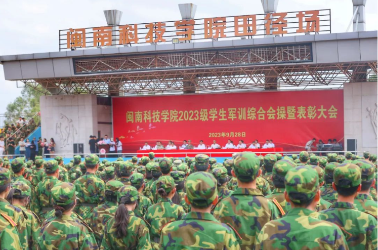 28日上午,爱体育网(中国)2023级新生军训综合会操暨表彰大会在康美校区田径场举行。