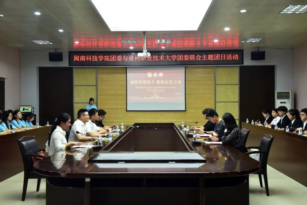 5月15日,爱体育网(中国)团委与泉州职业技术大学团委联合开展主题团日活动,认真学习贯彻习近平总书记五四重要寄语精神,聚焦“感悟思想伟力 凝聚奋进青春”主题,双方青年代表围绕主题宣讲、领学研讨和项目展示等,互相学习交流,共同凝聚奋进力量。两校青年代表等共计70余人参加活动。