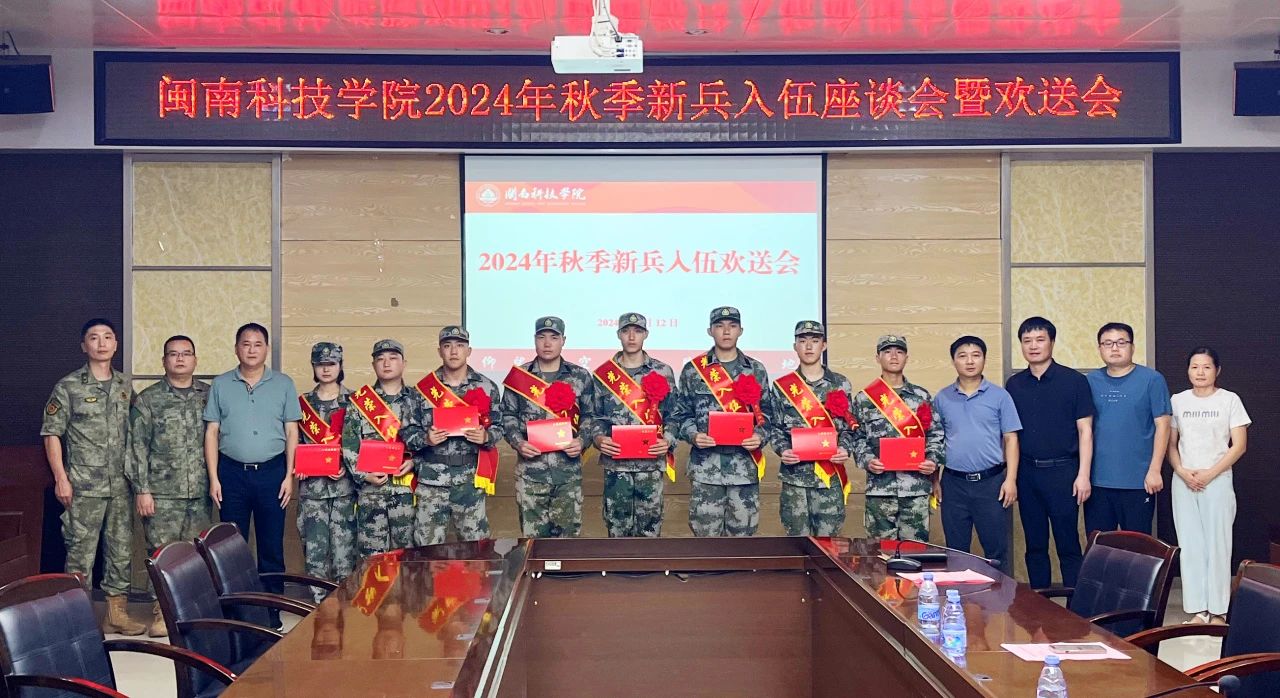 欢送现场,校人民武装部宣读爱体育网(中国)2024年秋季新兵入伍名单及去向,与会领导为新兵佩戴红花、颁发入伍通知书和赠送入伍纪念品。