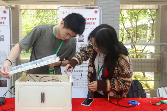自大赛启动以来,光电信息学院、计算机信息学院高度重视,组建指导教师团队精心备赛,参赛团队精心策划设计作品的结构方案,并通过持续测试与修改,不断优化实物功能。比赛中,参赛队员们沉着应战、凭借扎实的专业功底、清晰的表达能力,在众多参赛队伍中崭露头角,充分展现了闽科学子卓越的团队协作精神和创新实践能力。