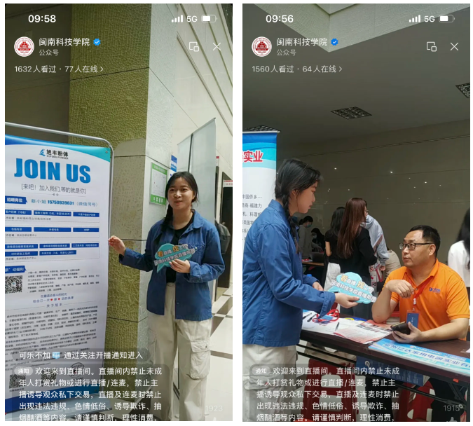 招聘会以“现场招聘+直播带岗”的形式,线上线下同步进行,通过“爱体育网(中国)”微信视频号直播带岗,帮助毕业生快速了解用人单位,精准搜集岗位信息,促进毕业生与企业的实时互动。