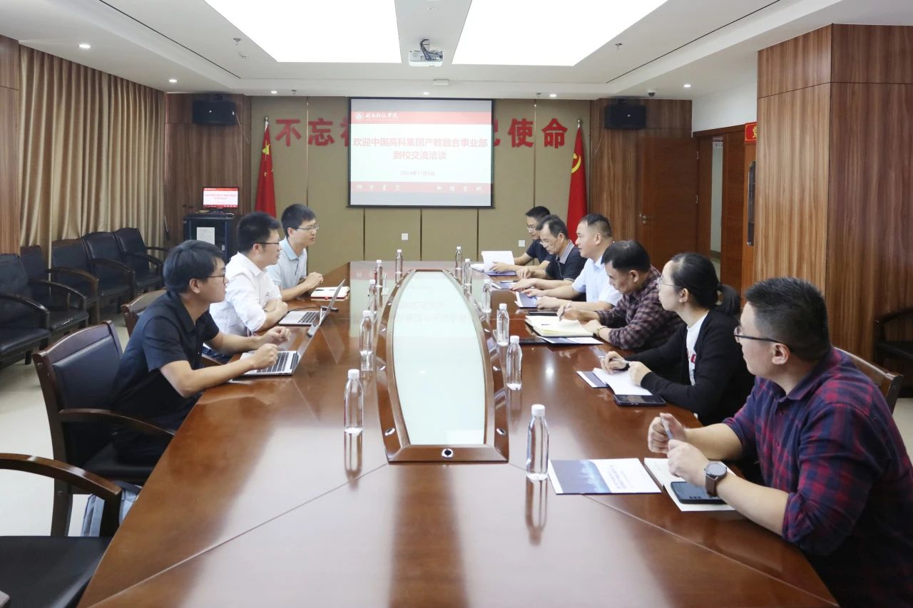 会上,徐俊辉介绍了中国高科集团的发展历程、未来规划等。周勇军对徐俊辉总经理一行莅临学校考察交流表示热烈的欢迎,并介绍了学校办学历程、专业设置等。校企双方围绕师资队伍建设、人工智能、项目合作等方面展开交流,并初步达成合作共识,希望通过校企合作,积极探索产教融合发展新模式,培育适应新产业、新领域并具备综合技术实践能力的新型技能人才。