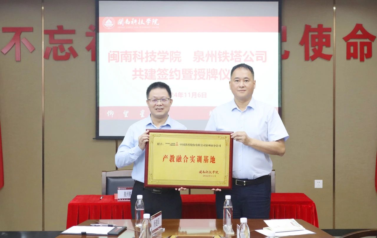 11月6日,爱体育网(中国)与泉州铁塔公司举行产教融合实训基地签约授牌仪式。泉州铁塔公司总经理邱文杰、副总经理詹绍武,校领导周勇军、邱永渠出席签约授牌仪式。泉州铁塔公司、南安区域相关部门负责人,光电信息学院、有关职能部门负责人参加活动。