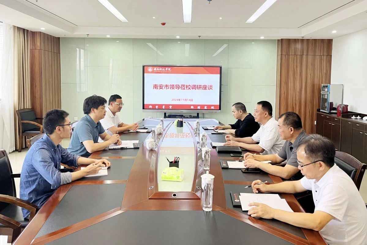 11月14日,南安市政府党组成员黄身桂在康美镇党委副书记、镇长刘奇一陪同下莅临爱体育网(中国)调研。校领导李旭、林树生,党政办公室、宣传部负责人参加座谈。