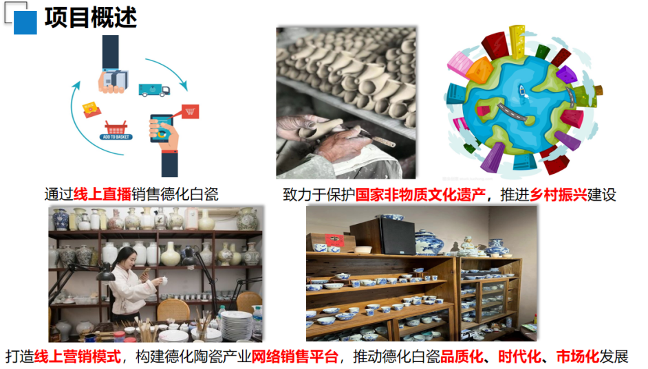 项目团队以“千年瓷都”为主题,深入调研德化瓷的市场现状,依托产品自主设计创新打造国潮陶瓷,通过抓住年轻人社交和自我愉悦的需求,结合德化瓷质感轻薄、纹理细腻的优点,将传统文化元素挖掘、理解、重构,打造年轻化的陶瓷产品,让更多年轻人感受到中华文化的魅力,助推德化瓷走向更大的舞台。