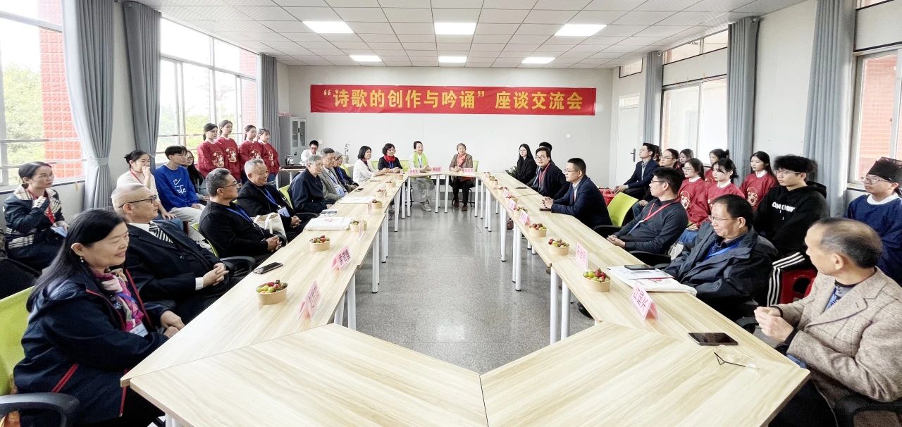 当天,人文学院举办学生诗作座谈交流会,与会专家学者围绕诗歌文化在校园中的地位、创新诗歌文化活动等内容,与师生代表进行深入交流探讨。