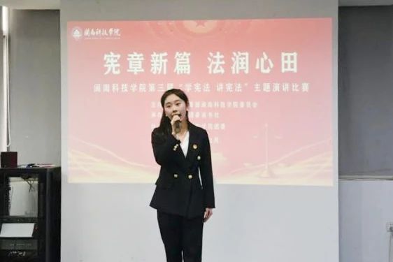 校团委大学生读书社举办“宪章新篇 法润心田”知识竞赛和主题演讲活动,不断拓宽宪法宣传渠道,增加普法活动的参与性、互动性。