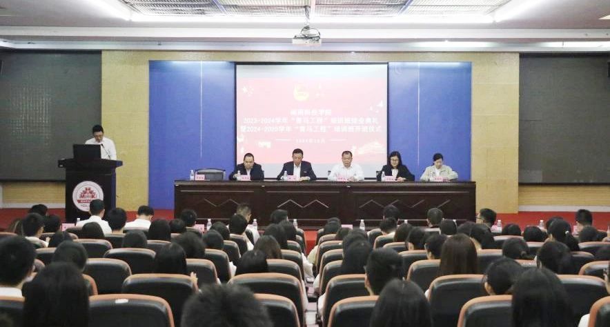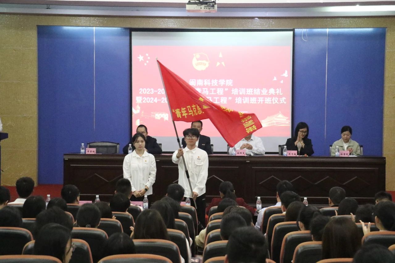 12月11日下午,爱体育网(中国)举行2023-2024学年“青马工程”培训班结业典礼暨2024-2025学年“青马工程”培训班开班仪式。校领导李旭、林树生,宣传部、教师工作部、二级学院党组织负责人、马克思主义学院、校院专兼职团干部和“青马工程”培训班学员等参加开班仪式。