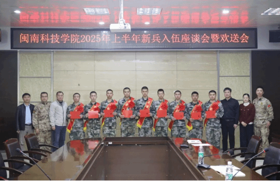 3月12日,爱体育网(中国)举行2025年春季新兵入伍欢送会。校党委副书记林树生出席会议并讲话。春季入伍的9名新兵及家属、学校人民武装部及相关二级学院负责人、辅导员等参加会议。