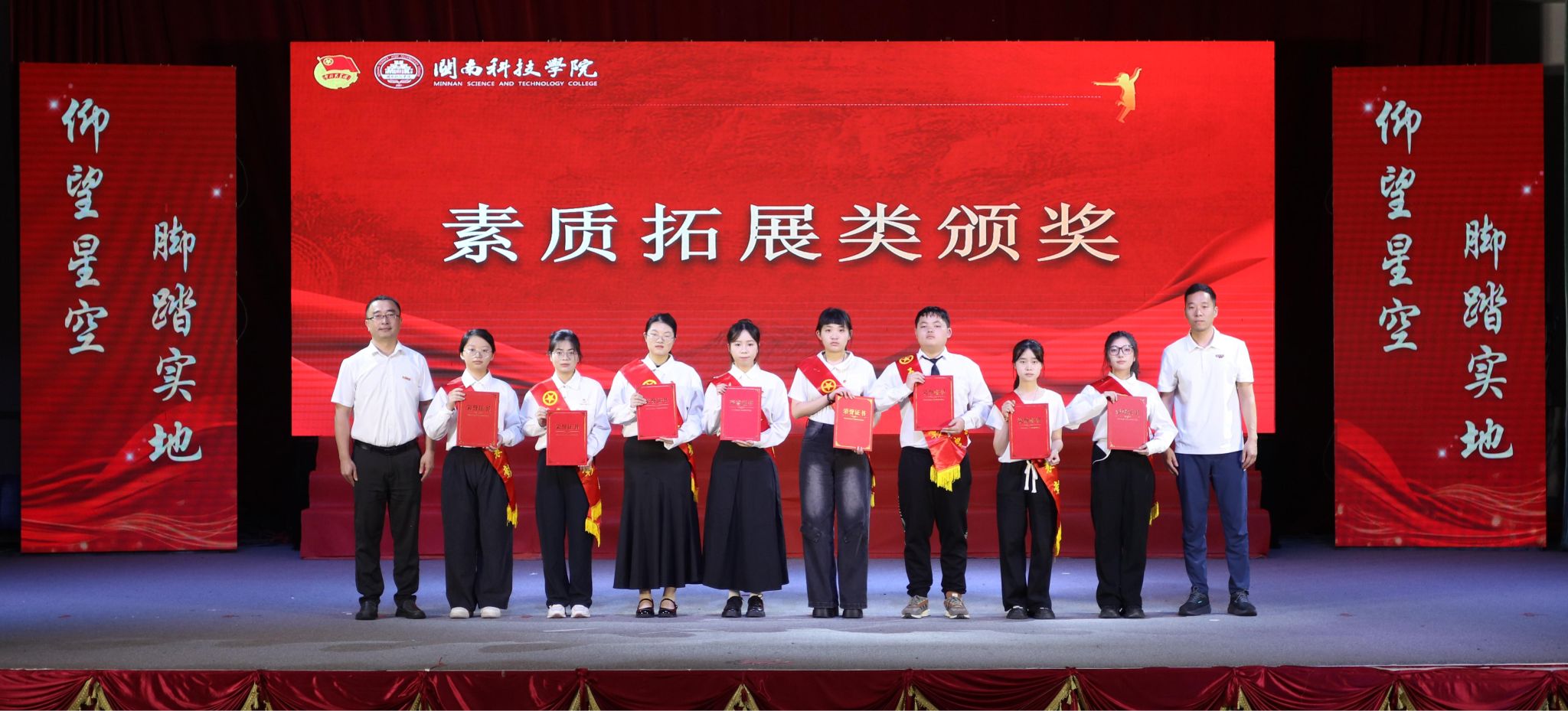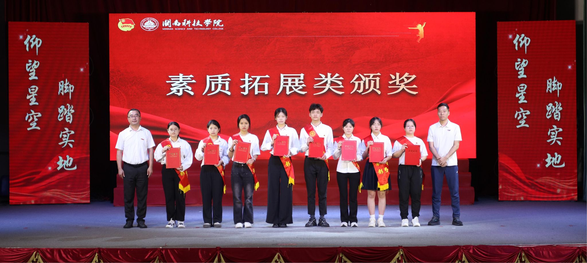 大会分组织建设类,学风建设类、校园文化类,素质拓展类,实践服务类等四个部分为受表彰集体和个人颁奖。