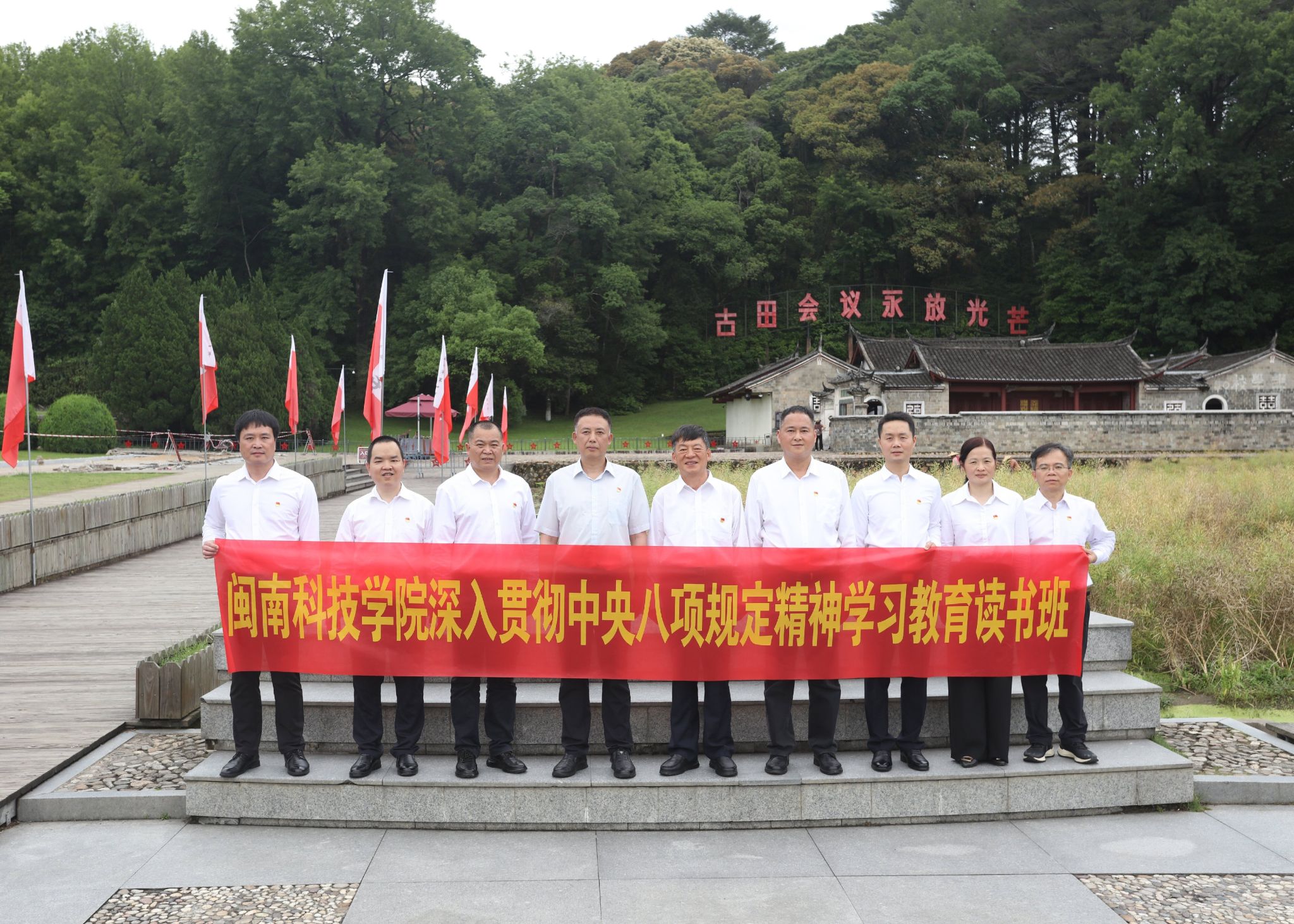 5月9日,校党委开展深入贯彻中央八项规定精神学习教育读书班现场教学活动,校领导袁自煌、李旭、周勇军、林树生,校党委委员、校纪委委员等赴古田会议旧址群参观学习。