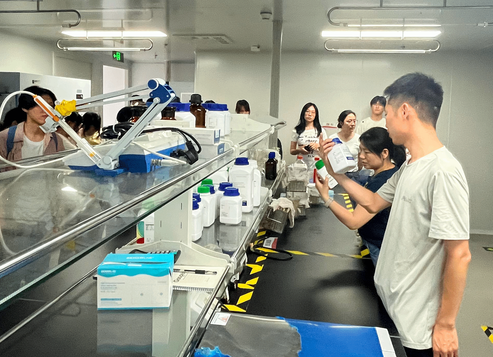 在泉州市鼎凯检测技术有限公司,专业检测技术人员为师生们现场演示高效液相色谱仪、气相色谱仪等精密仪器的规范操作流程,详细讲解食品中有害物质检测、营养成分分析等关键技术要点。