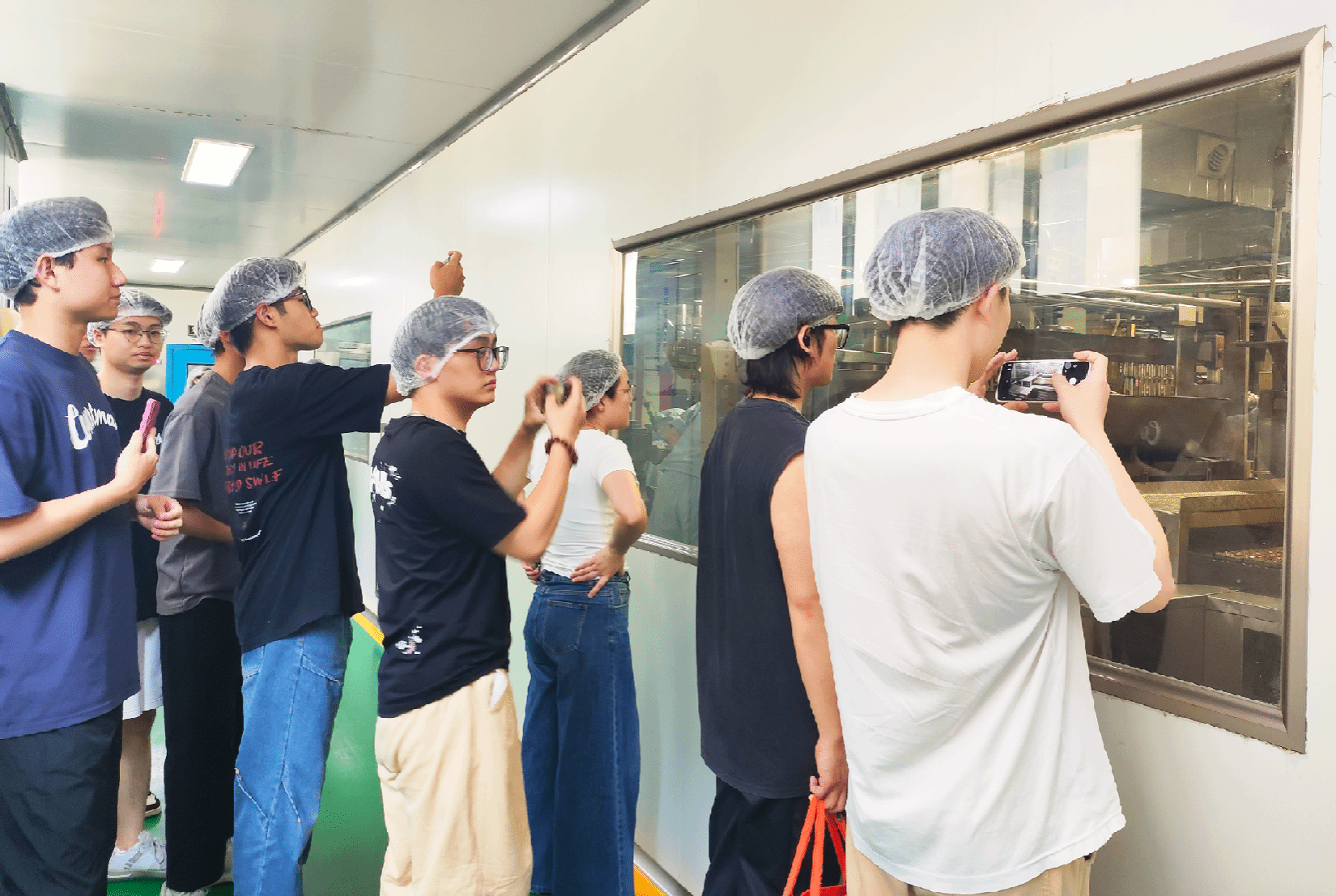 在金冠(中国)食品有限公司糖果生产车间,通过观摩生产线、产品展示、师生互动等活动,展现了企业先进生产工艺和科技创新实力。