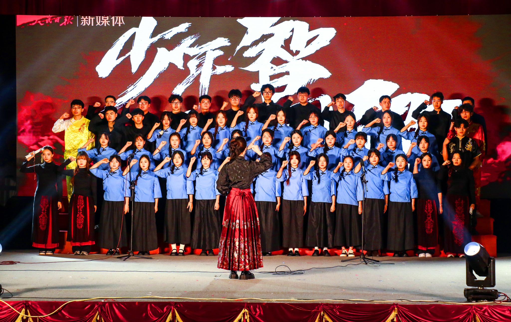 活动现场,进入决赛的13支专业合唱代表队,倾情演唱了《歌唱祖国》《走向复兴》《没有共产党就没有新中国》《黄河大合唱》《大中国》等经典红色歌曲,同学们用嘹亮的歌声奏响青春乐章,以饱满的热情歌颂伟大时代,编织出一堂沉浸式的美育课,引导广大青年学子进一步坚定文化自信,弘扬五四精神,传承红色基因,厚植爱国情怀。