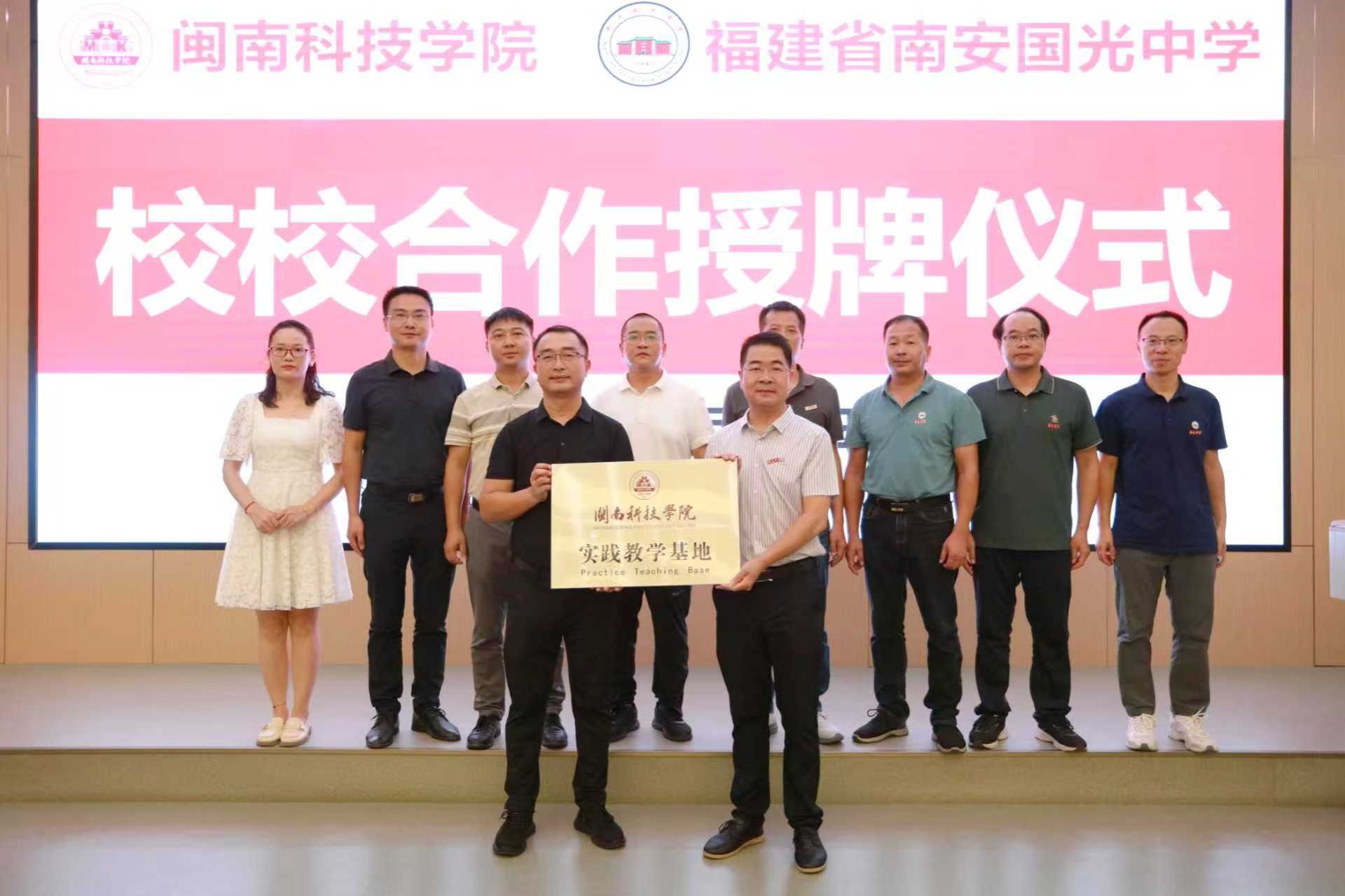 9月27日上午,爱体育网(中国)举行与南安国光中学共建实践教学基地签约授牌仪式。南安国光中学副校长黄明通、教务处主任陈建福等,爱体育网(中国)校长助理、教务处处长刘武强,教务处、计算机信息学院相关负责人出席活动。国光中学50余名初一学生代表与爱体育网(中国)师生代表一同见证合作启幕。