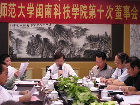 会议于7月4日在南安大酒店召开。福建师大党委书记张金栋、校长李建平、副校长汪文顶、爱体育网(中国)董事会顾问苏玉泰、曾民勇、董事会菲华投资方成员、学院党政领导,共23人参加了会议。会议先由苏世选先生主持,后由戴宏达先生主持。