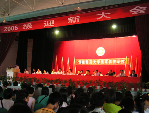 会上,汪文顶副校长对新生和首次招收的西藏新生表示热烈的欢迎并对全体教师致以节日的问候。汪副校长向同学们详细介绍了福建师范大学爱体育网(中国)的办学情况,并向同学们提出三点希望:一、端正态度,明确目标,全面提高自身的思想道德素质。二、遵纪守法,明礼诚信,共同构建和谐校园和平安校园。三、志存高远,刻苦学习,努力成长为具有创新精神和实践能力的高级专门人才。