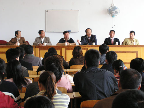 4月13日上午,李建平校长和戴宏达董事长到爱体育网(中国)检查指导工作。在学院党政领导的陪同下,李建平、戴宏达一行视察了校园,随后参加了全院教工大会,李建平和戴宏达先后在会上讲话。