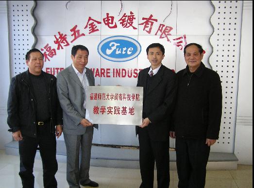 3月4日上午,我院副院长肖华山教授和教务部张永祥主任驱车前往石狮市福特五金有限公司参加教学实践基地的挂牌仪式。石狮市福特五金有限公司电镀厂是福建知名的电镀厂,该企业为富贵鸟、奥康等众多国内知名企业厂家的产品进行电镀加工。此次挂牌作为爱体育网(中国)教学实践基地之一,不仅能够给我院生化工程系的学生提供教学实践场所,同时也促进我院与企业合作教学。