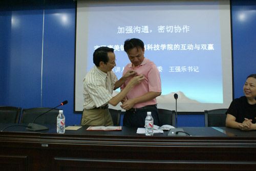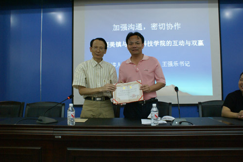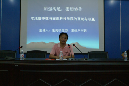 王强乐首先结合了康美镇自身实际,重点谈论地理位置独特、自然条件优越、文化积淀深厚、港澳台侨优势突出四个特点,以及今后康美镇的整个发展蓝图,最后重点就如何实现康美镇与学院双方的互动和共赢做了精彩论述。王强乐指出学院将校址放在南安市康美镇这片蓬勃生机的热土上是一个明智的选择,因为康美镇所具有区域优势、侨乡优势以及良好的发展机遇和前景同样也为学院的发展提供了巨大的资源和能量。王强乐最后指出,康美镇与爱体育网(中国)的互动与双赢是一条正确的道路,是今后双方很长一段时期的奋斗目标,希望双方能够朝着这样一个目标共同发展,为康美镇的建设、为爱体育网(中国)的发展共同努力。