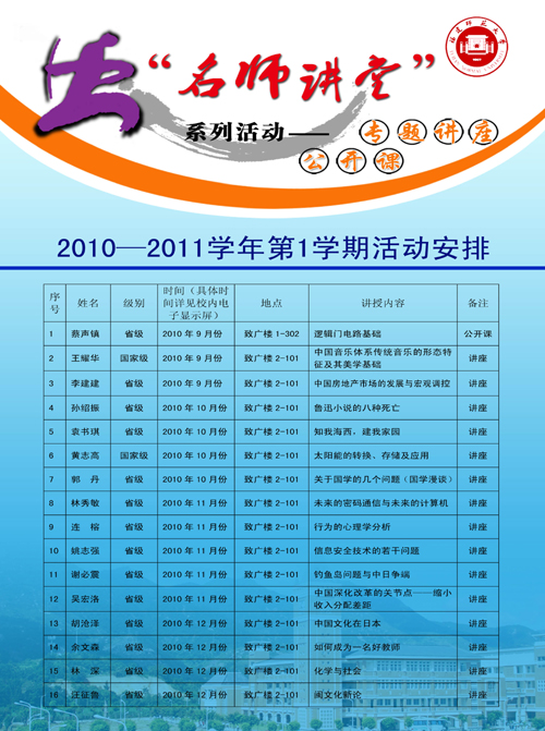 福建师范大学举办“名师讲堂”系列活动——专题讲座(公开课)