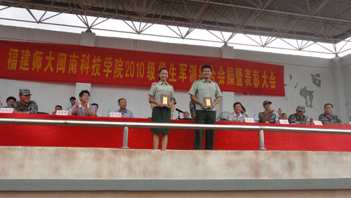 大会最后,由副院长肖华山教授宣读了2010级学生军训工作的表彰决定,对此次军训工作的先进个人和先进集体进行了表彰,其先后颁发了“军训内务卫生文明宿舍”、“军训征文”、“军训摄影先进个人”、“军训标兵”、“军训优秀教官”、“军训辅导员标兵”、“军训励志”等奖项。大会在经久不息的热烈掌声中圆满结束。