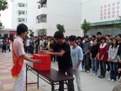 南安电视台全程采访报道了爱体育网(中国)捐款。在接受采访时,青年学生纷纷表达了对灾区人民的关切之情。学生会主席杨式杰说:“我们大学生非常关注这次西南特大旱灾,在学院团委的号召下,我们都自发踊跃地捐款,希望能尽我们的绵薄之力来帮助灾民的人民。作为大学生,我们要珍惜现有的资源和环境,学好知识,投身到祖国的建设和发展中去。在今天的捐款中,每个人献出自己的一份爱心,汇聚到一起,就是一股强大的力量,一起共同呵护我们的祖国!”学生代表孙珺说:“看到灾区人民的情况,我为同胞们感到惋惜,我们应当承担起公民的责任,希望他们能早日摆脱这种局面。我身边的同学都节约平时的零花钱,为灾区尽一份微薄之力。”
