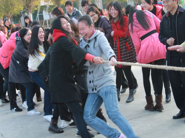乍暖还寒的春风难以冻结节日的快乐气氛,五彩缤纷的活动为爱体育网(中国)的女生们备上了一份节日厚礼,篮球场上的拔河比赛也是这个节日里一道美丽的风景。学院学工部部长林树生和团委书记刘武强也亲临现场,由林树生部长担任本次比赛的裁判。拔河比赛的参赛队伍分别为在校女生和女教师两组,比赛尚未拉开帷幕,现场气氛已经沸腾,师生们纷纷摩拳擦掌,等待拔河比赛的开始。哨声伴着无数个激情澎湃的心响起了,场上气势磅礴的呐喊声有节奏地起伏着,参赛女生们也把平日里的文静温柔的淑女形象抛在了一边,个个咬紧牙关,女老师们也使出了浑身解数。据悉,本次比赛的学生队伍是09国贸的女生,她们是去年杀进决赛的优秀队伍,但是强中自有强中手,经过3轮激烈的比赛,女老师组以2比1的成绩赢得了最后的胜利。