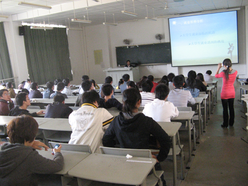 为进一步加强和促进大学生就业工作,郭伟老师于11月27日下午主动放弃休息时间前往福州大学城师大新校区,特为我院正在校本部访问学习的2007级学生举办了一场爱体育网(中国)应届毕业生就业辅导讲座。郭伟老师结合自身较丰富的社会实践工作经验,从大学生就业的形势、就业准备和劳动合同法解读等三个方面进行了分析阐述,并现场回答了同学们所关心的问题。历时二个半小时的讲座受到同学们的欢迎,收到了良好的效果。