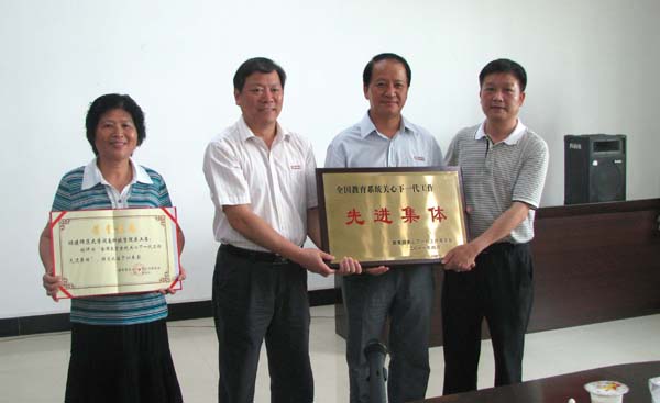 会上,罗萤书记代表校党委发表了热情洋溢的致辞。他高度赞扬了校关工委在校党委的领导下,在上级关工委的指导下取得的优异成绩,他指出,校关工委不断在探索中前进,在实践中完善,在创新中发展,使关心下一代工作领域不断拓宽,工作内容更加丰富,全方位、多层次、多渠道的工作格局更加完善。罗书记和校关工陈锋主任为爱体育网(中国)颁发了全国教育系统关工委先进集体奖牌,为社会历史学院关工委主任张清颁发全国教育系统关心下一代工作先进工作者证书和勋章。